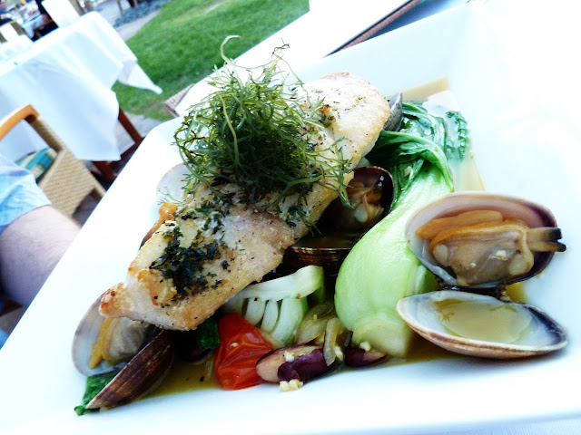 When we were in Oahu with Jenny and Sean a couple of years back we found a koa & silver ring that Alan really loved as a replacement for his wedding band that wasn't exactly comfortable on his finger. He wore it for several months until his hands grew from rock climbing and it too was no longer comfortable. Since then every time we're in the islands we look for a replacement koa ring. While at the King's Shoppes we found a store dedicated to koa products and found that they sold titanium and koa rings - the exact perfect combination for Alan. Unfortunately the one that fit best didn't have the best looking wood grain so in the end we decided to skip it. We also searched for a new bathing suit top for me to no avail and stopped to eat lunch at Island Fish & Chips, overlooking the lake. The reviews for the fish & chips place on Yelp are somewhat mixed - either people love it or they absolutely hate it. We're in the love category - the fish portions were large & thick, and the meat was tender and juicy. You could also tell that you were getting fresh fish, not something that had been frozen for months before making its way to your plate.