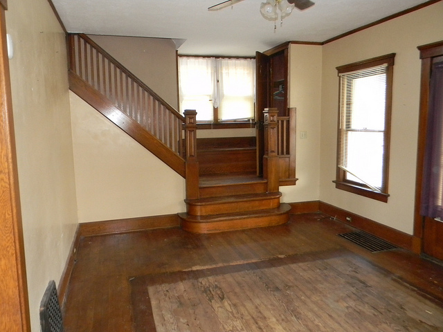 As you can see, the floors need to be refinished but that bannister is LOVELY.